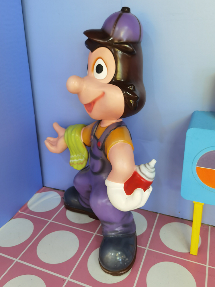 這種雕塑的優(yōu)勢之一是它的耐候性和耐久性。玻璃鋼具有抗紫外線、抗氣候變化和抗腐蝕的特性,使得卡通造型雕塑能夠在室外環(huán)境中長時間保持美觀。這也為其在公共場所、主題公園、城市雕塑等領(lǐng)域的應用提供了可能性。