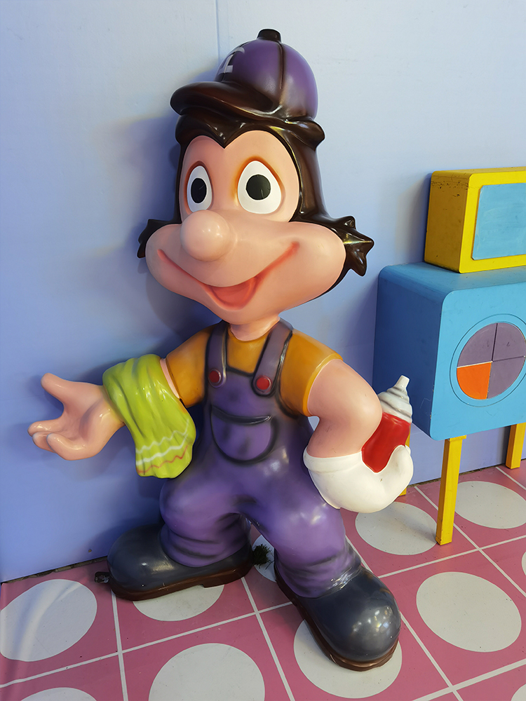 除了在公共藝術(shù)領(lǐng)域的應用,玻璃鋼卡通造型雕塑還常常出現(xiàn)在商業(yè)和娛樂場所。例如,它們可能被用于主題公園的裝飾,成為吸引游客的標志性景點。在商場、兒童樂園等場所,玻璃鋼卡通雕塑也是吸引顧客、增加趣味性的一種有效手段。